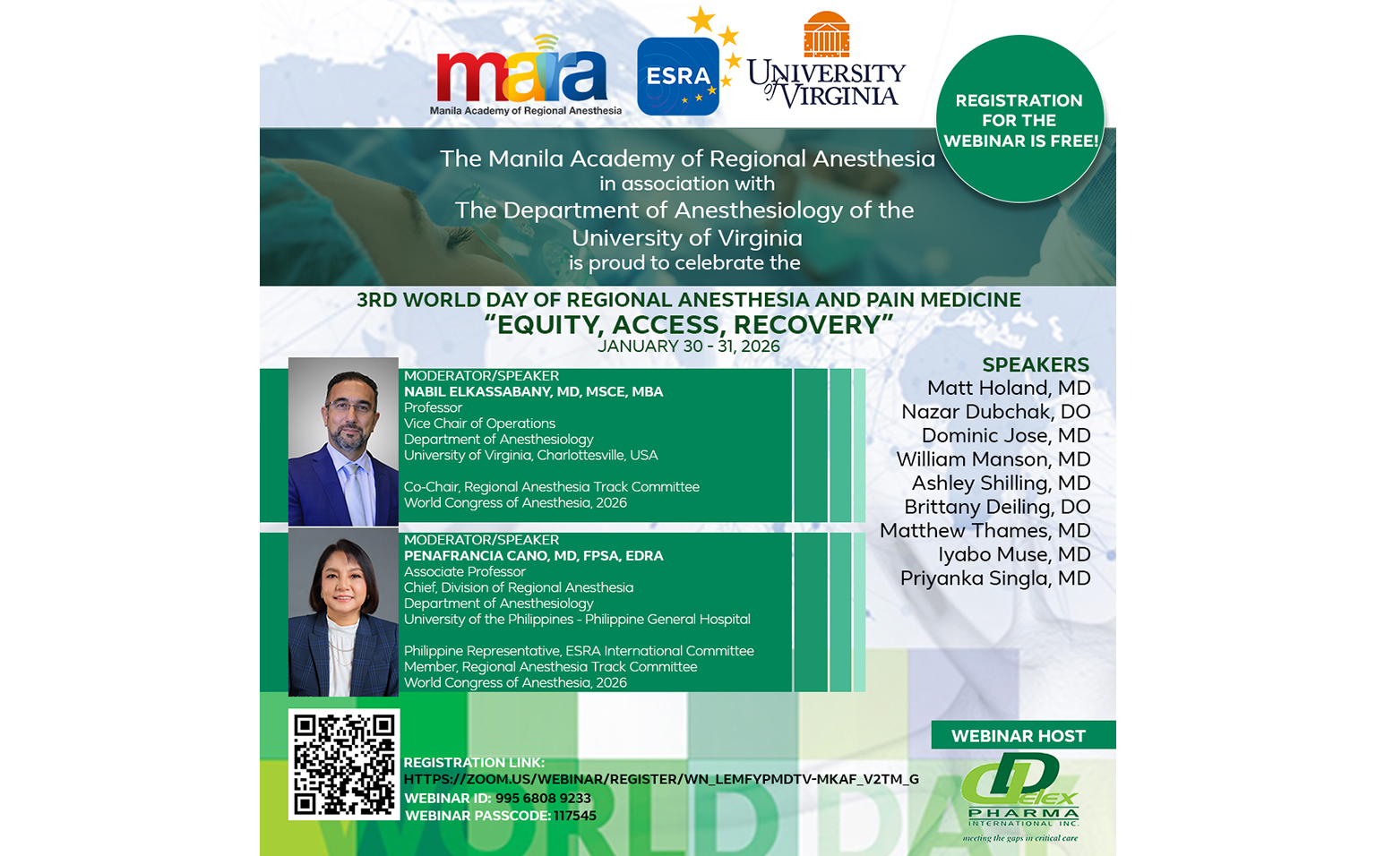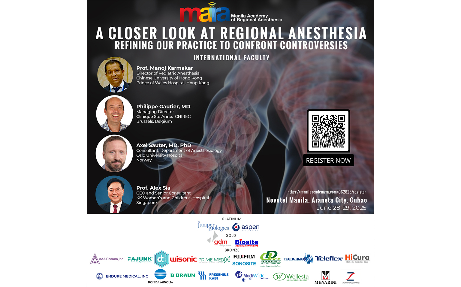 The Manila Academy of Regional Anesthesia (MARA) was established by a core group of anesthesiologists who initiated and introduced the use of the peripheral nerve stimulator and ultrasound guided regional anesthesia (RA) in the Philippines. Since 2008, the co-founders of MARA have been faculty members, speakers and facilitators in various ultrasound-guided regional anesthesia (UGRA) courses held throughout the country and internationally.